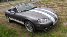 Mazda MX5 drugiej generacji po liftingu w limitowanej wersji Phoenix (kolor Titanium Gray Metallic, brązowe wnętrze). Mocniejszy silnik 1.8 146KM, dyferencjał